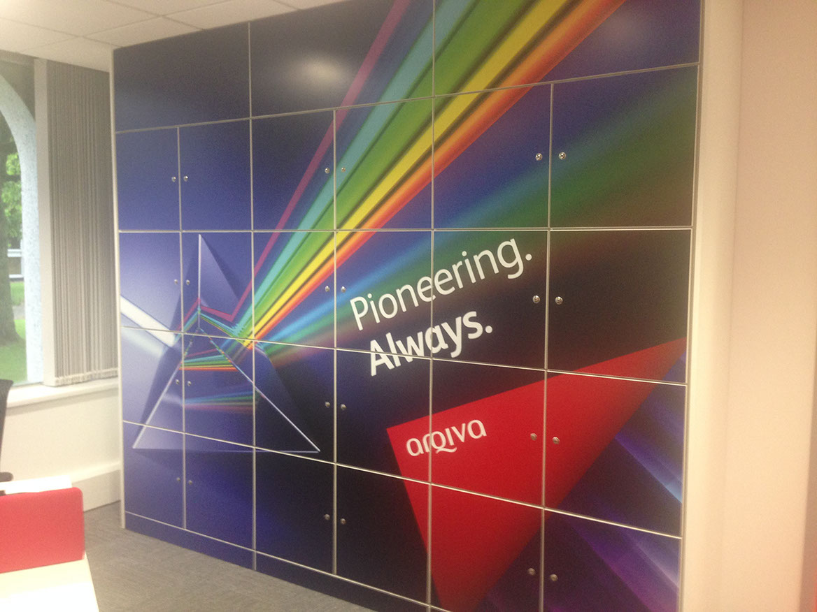 If limited wall space is a problem, even furniture like storage wall cupboards, lockers filing cabinets and drawers can bring a room to life with digitally printed vinyl.