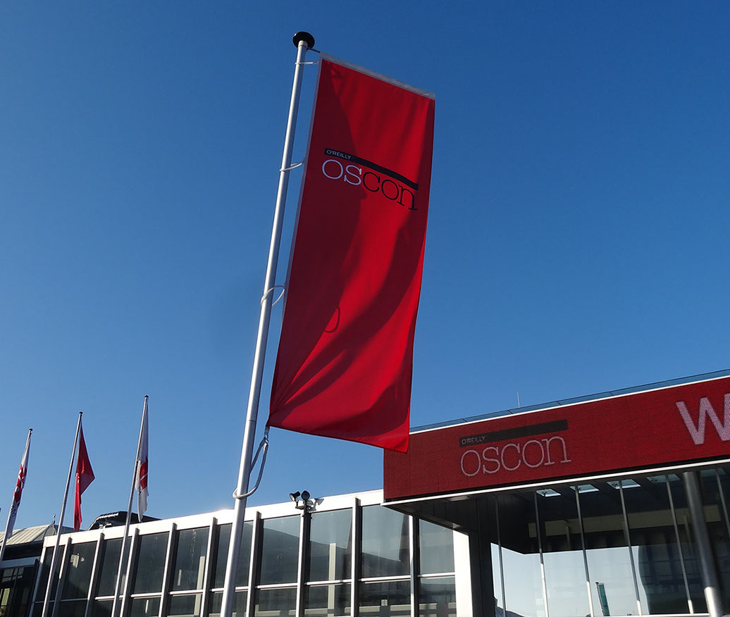 Apart form the obvious event flags, flag material can also be used as screens in office environments, bringing a truly unique ambience to an interior space.
